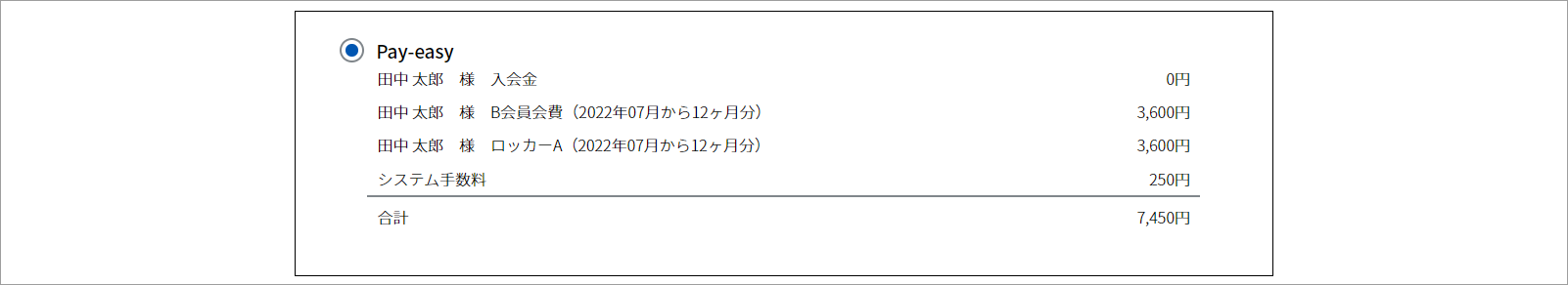 ①『お支払方法選択』画面にて、ラジオボタンより「Pay-easy」を選択します。