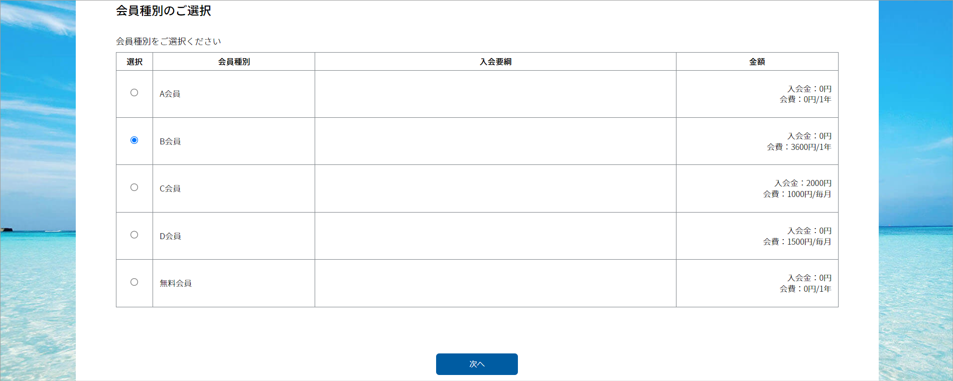 ②『会員種別のご選択』画面が表示されますので、再度登録を進めてください。