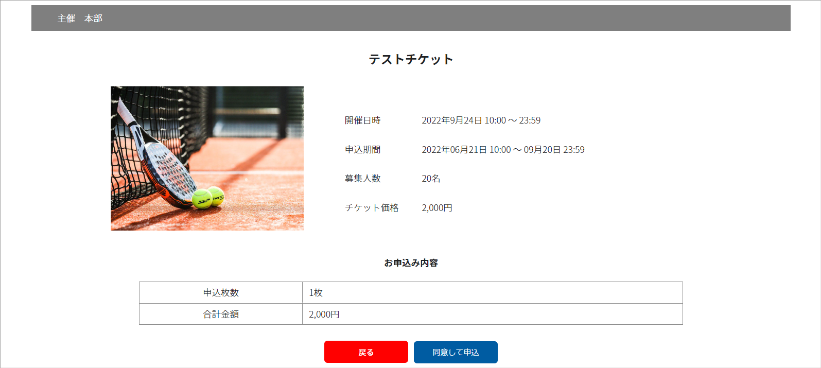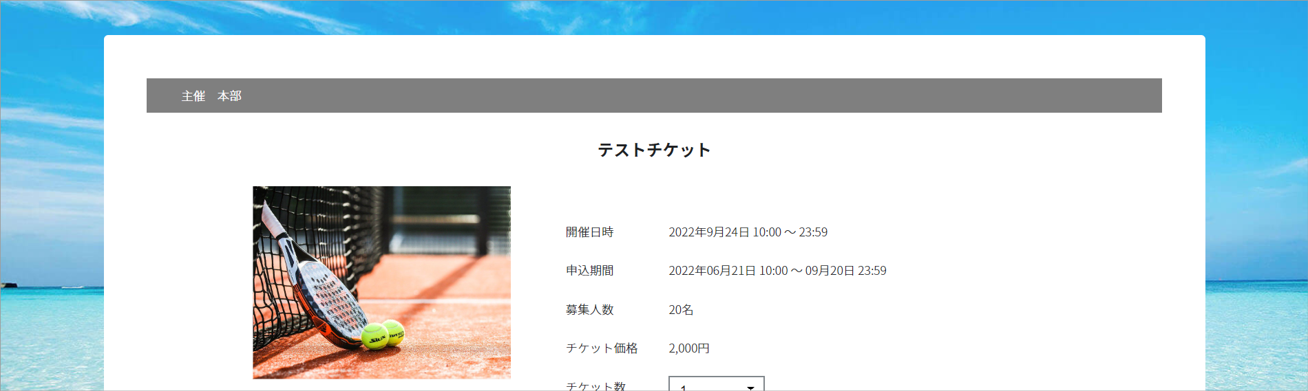 ②購入する「チケット数」を選択し、「申し込む」をクリックします。