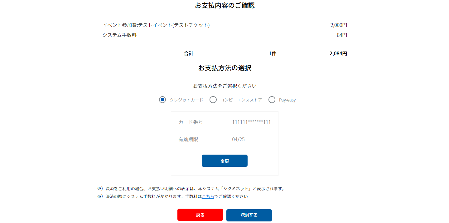 「ご請求情報」よりお支払いを進めると、『お支払内容のご確認』画面に遷移します。