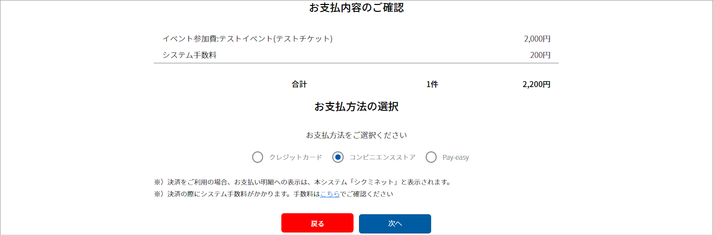 ③お支払い内容を確認し、「次へ」をクリックします。