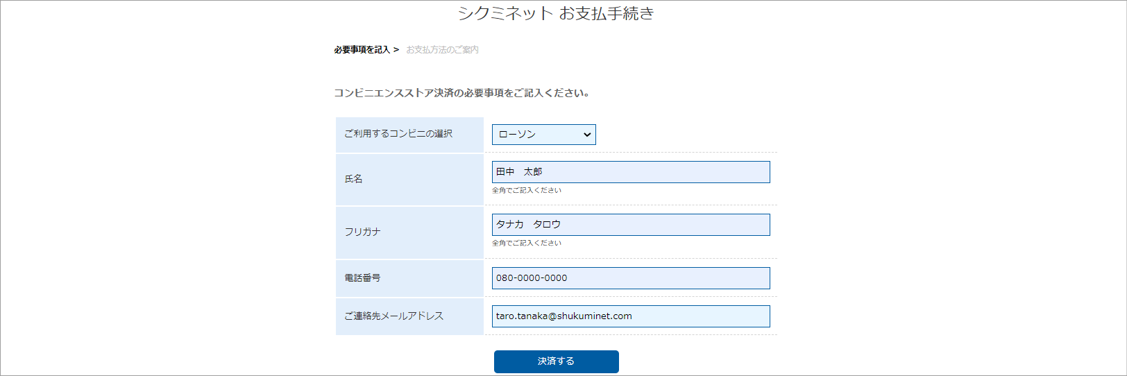 ④必要情報を入力し、内容に問題ない場合は、「決済する」をクリックします。