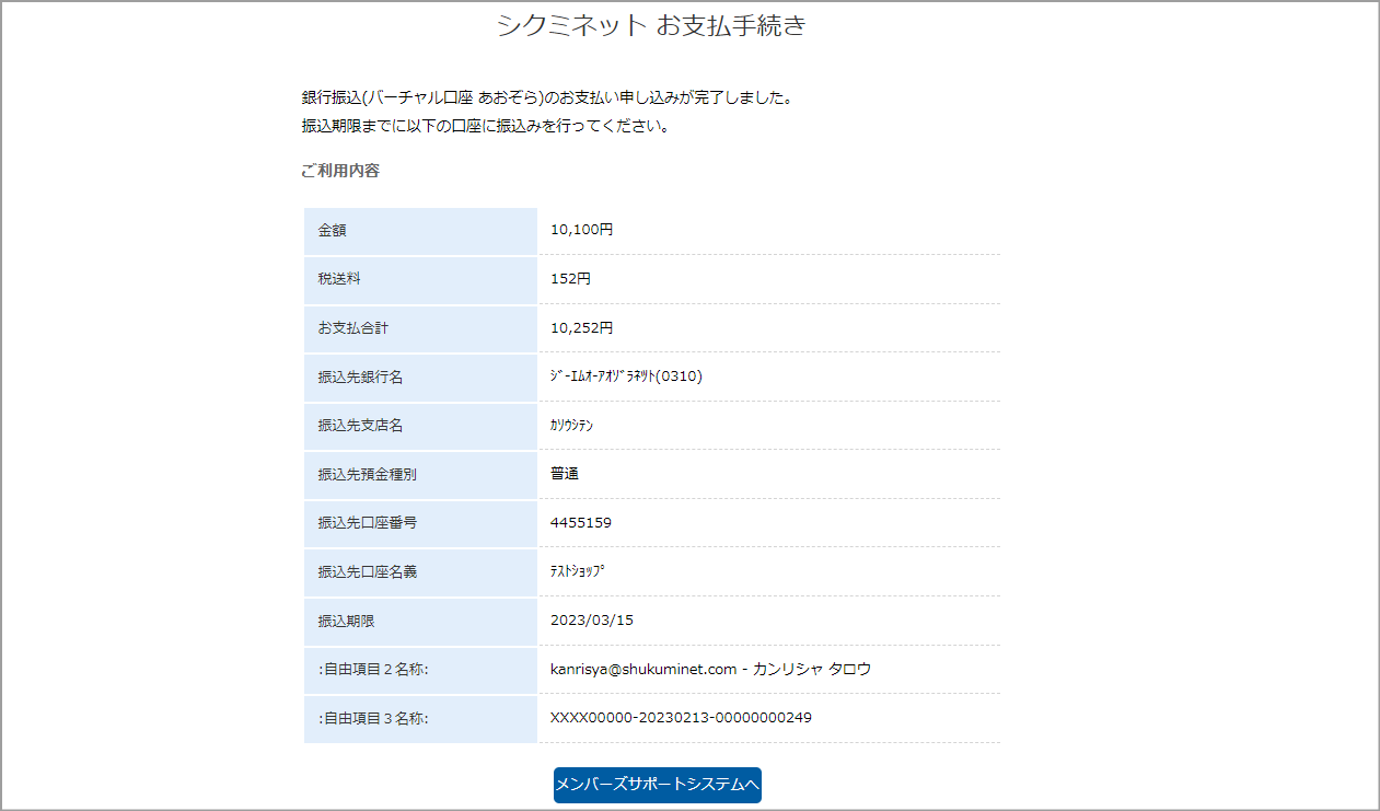 ⑤お支払い操作を完了する場合は、「メンバーズサポートシステムへ」をクリックします。