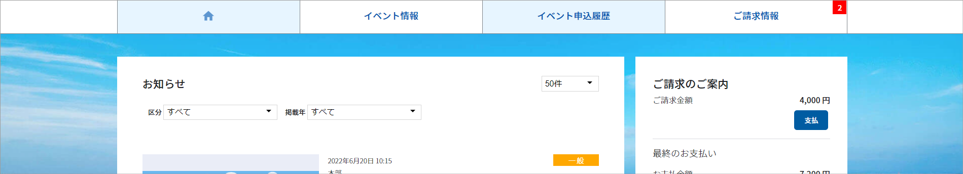 - 申込状況(決済状況)、承認状況等、現在の申込状態を確認することができます。