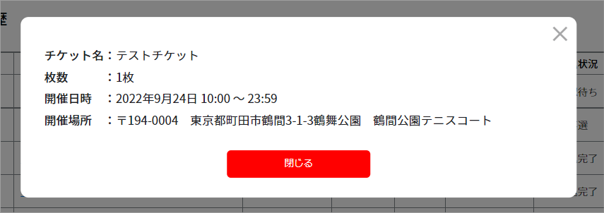 ③チケット情報を確認したい場合は、チケット情報欄の「チケット名(青字)」をクリックします。